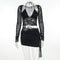 Deep V Lace Stitching Mesh Long Sleeve Dress