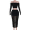 Fashionable Elegant Shiny Butterfly Mesh Off-shoulder Long Sleeve Mid-length Dress Set